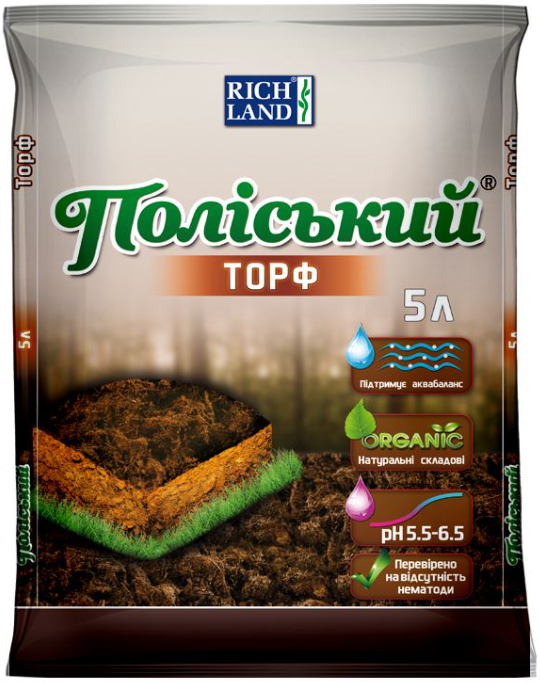 Торф Поліський – мікс низинних та верхових торфів, доведений до нейтрального середовища карбонатом кальцію (вапном).