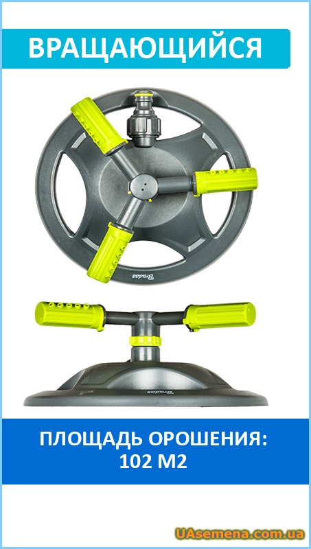 Ороситель вращающийся 3-х рожковый для газона, сада и полива клумб. Каждый из трех рожков имеет по пять форсунок и регулируется вокруг своей оси.Площадь орошения 102 м².Изготовлен из высококачественного пластика. Имеет р... Читати далі...