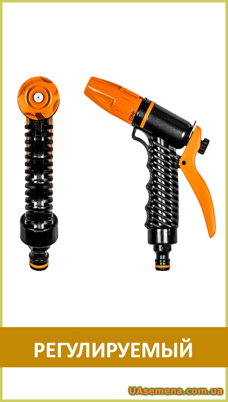 Прямой регулируемый пистолет с адаптером под коннектор, позволяет производить полив различными струями воды. Регулируемая сила струи.