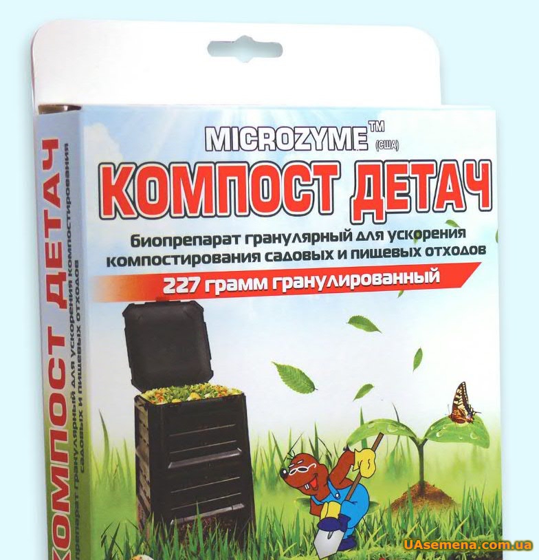 Компост Детач - незаменимый биопрепарат для ускорения компостирования садовых и пищевых отходов. Он состоит из уникальной комбинации мезофильных микробов, плесени и дрожжей (которые содержаться в почве и компосте, но в меньших количествах), способствуют переработки органики в компост для удобрения почвы.