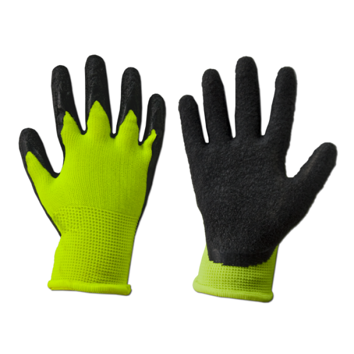 Перчатки выполнены из полиэстерового трикотажа - стежок 13 (1,8 мм) и имеют покрытие из вспененного латекса для защиты ладоней и пальчиков.