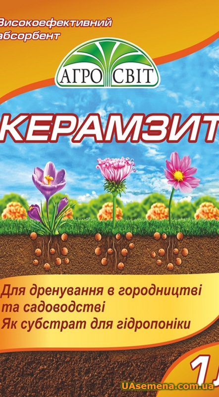 Керамические пористые гранулы, полученные путем обжига природной натуральной глины.Свойства: керамзит химически инертный; имеет нейтральное РН; НЕ деградирует; водопоглощение до 20%; благодаря простой структуре керамзит поглощает избыточную влагу из почвы; имеется в керамзитных гранулах влага будет длительное время поддерживать оптимальную влажность почвы; воздушные зазоры в слое керамзита обеспечивают "дыхание" почвы и способствуют разложению органических и минеральных веществ; снижает уровень промерзания почвы; керамзитовую дренирование препятствует закислению почвы, исключает появление на его поверхности плесени и почвы.Применение: внесение керамзита в почву производится двумя способами: послойным и методом перемешивания. Если на участке нужно дренирование почвы, то керамзит укладывается слоями. Перед посадкой растений на дно горшка, ямы (для посадки плодовых деревьев и кустарников) или на место грядки насыпать керамзит слоем 2-3 см, сверху добавить почву, посадить растение. На поверхность почвы насыпать 1-2 см керамзита. Это помешает перегрева верхнего слоя почвы и уменьшит испарение влаги. если нужно создать рыхлый умеренно влажную почву, то керамзит вносят способами смешивания с почвой. Это также улучшит воздухообмен в почве, особенно в тяжелых глинистых почвах.
