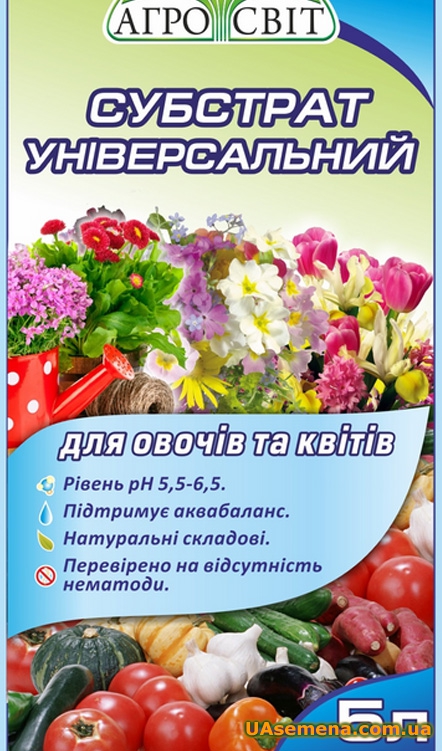 Субстрат Универсальный ДЛЯ ОВОЩЕЙ И ЦВЕТОВ, 5 л