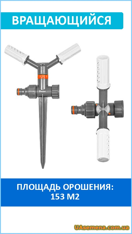 Вращающийся ороситель на пластиковом колышке. Регулировка каждого разбрызгивателя, угла наклона струи. Регулируемый размер и форма области распыления. Колышек имеет ниппель для быстроразъемных соединений и возможность последовательного соединения с другими оросителями.Площадь орошения: 153 м²Поставляется на блистере.