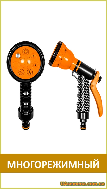 Пистолет 7-функциональный с адаптером под коннектор, позволяет производить полив различными струями воды. Регулируемая сила струи.