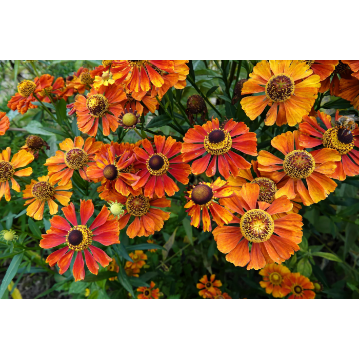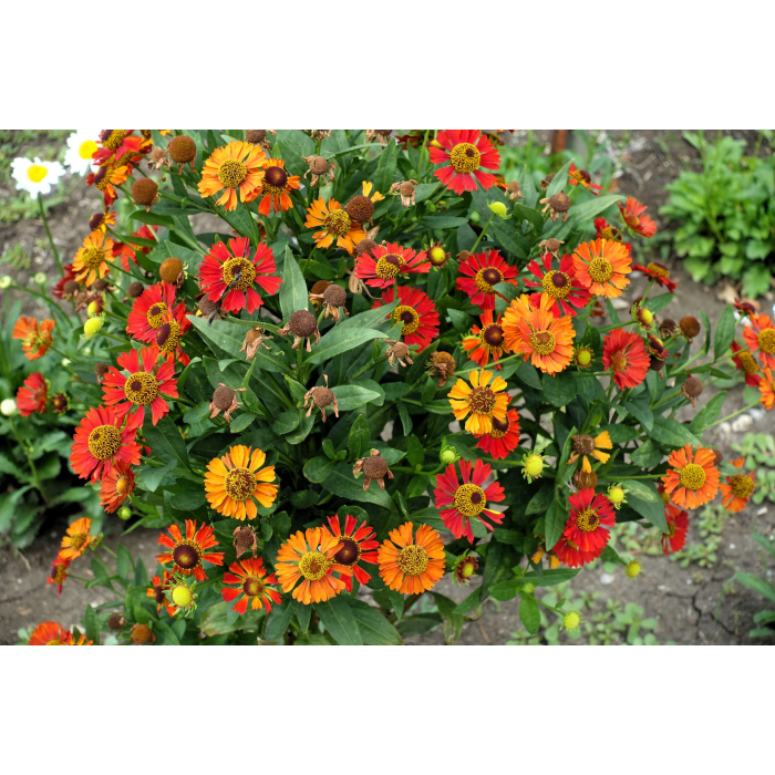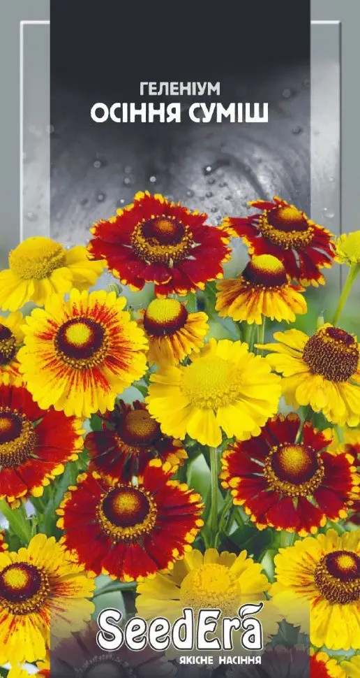 Гелениум осенний (смесь) — эффектный высокорослый многолетник с крупными ромашковидными соцветиями в насыщенных жёлтых, оранжевых и красных тонах. Формирует пышные кусты с прочными прямостоячими стеблями. Прекрасно подходит для создания ярких акцентов на клумбах, в миксбордерах и для срезки. Особенно ценится за продолжительное цветение во второй половине лета и осенью, когда большинство растений уже отцветает.