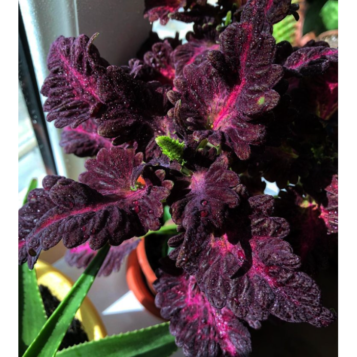 Колеус Черный дракон относится к серии, которая отличается фантастически красивыми, с бархатной поверхностью и бахромчатым гофрированны краем, листьями. За счет хорошего разветвления растение формирует кустик высотой 30-... Читать далее...