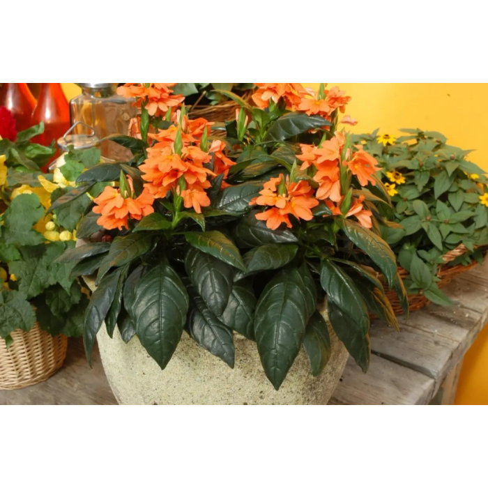 Кроссандра Тропик (Crossandra Tropic) - яркое, оригинальное комнатное растение, высотой 25 см. Листья темно-зеленые, длинные, узкие, заостренные, с характерным волнообразным краем. Цветы красной окраски, 2-2,5 см в диаме... Читать далее...