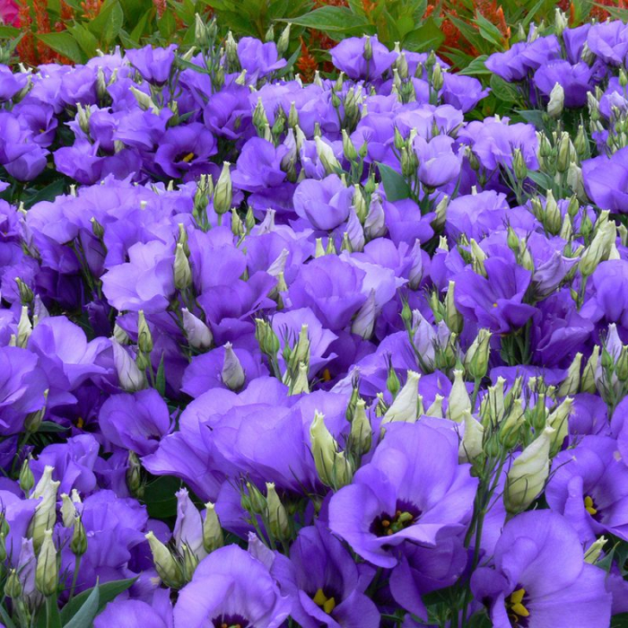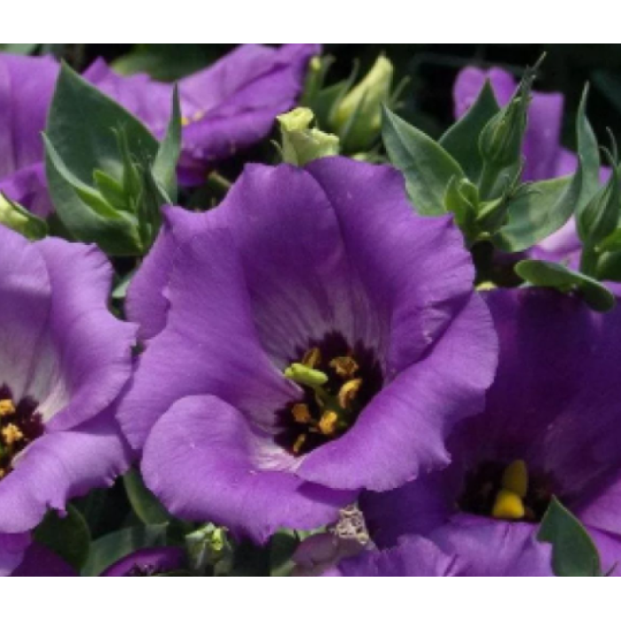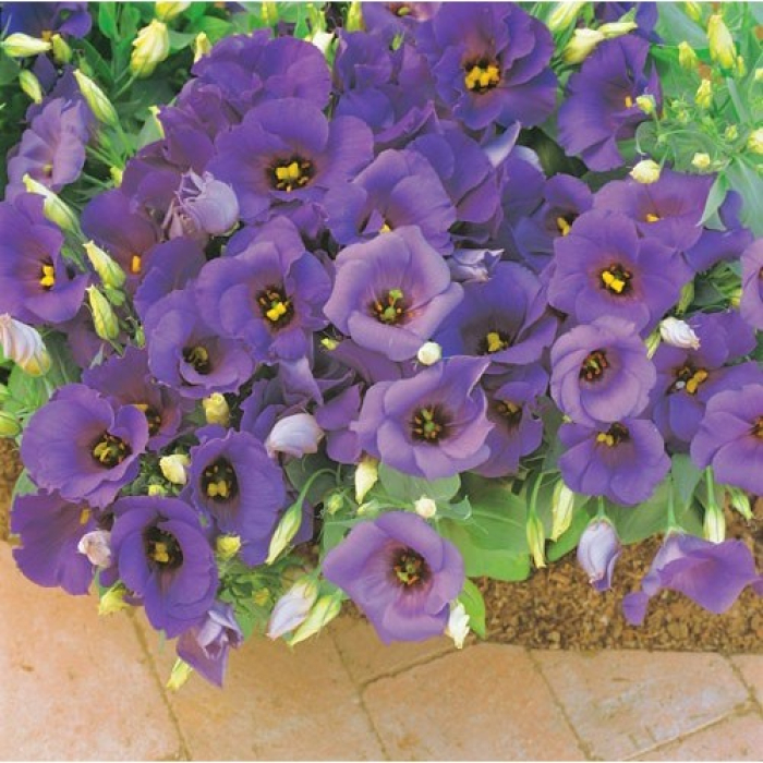 Это необыкновенно красивое растение. Цветки напоминают огромные колокольчики насыщенного синего цвета. На одном цветоносе образуется большое количество бутонов. Букет из эустомы прекрасно стоит в вазе. Этот компактный сорт выращивается в горшках, как комнатное растение.