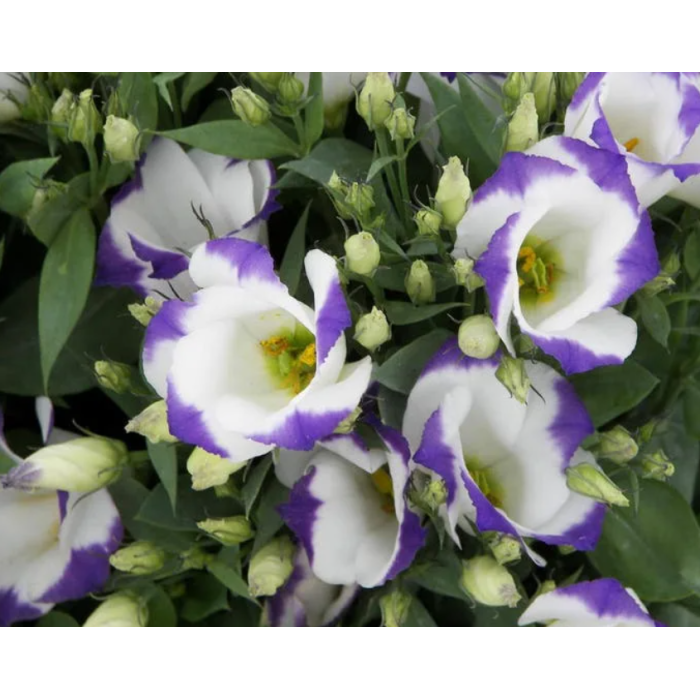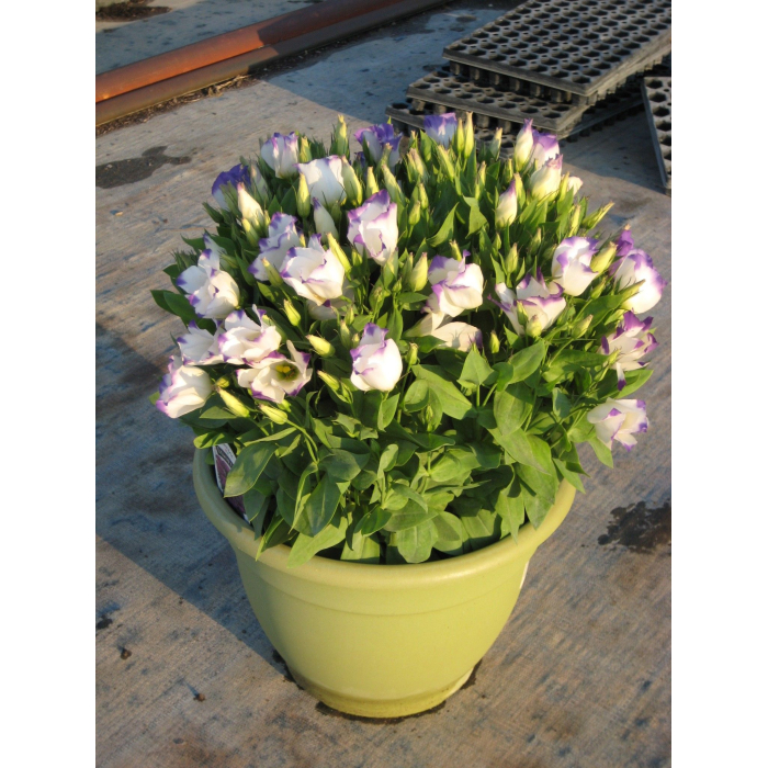 Непревзойденное компактное растение с сизыми, словно покрытыми воском, листьями. Стебли прочные, разветвленные, образуют на верхушке целый букет двухцветных белых с фиолетовой каймой цветков. Выращивают как комнатное горшочное растение, на балконе, лоджии, на клумб, в промышленных оранжереях на срезку. Букет из эустомы прекрасно подойдет к любому торжеству, долго сохранит привлекательный свежий вид в вазе. На зиму растение можно перенести в зимний сад. Цветки эустомы напоминают полуоткрытые бутоны розы с атласными лепестками.