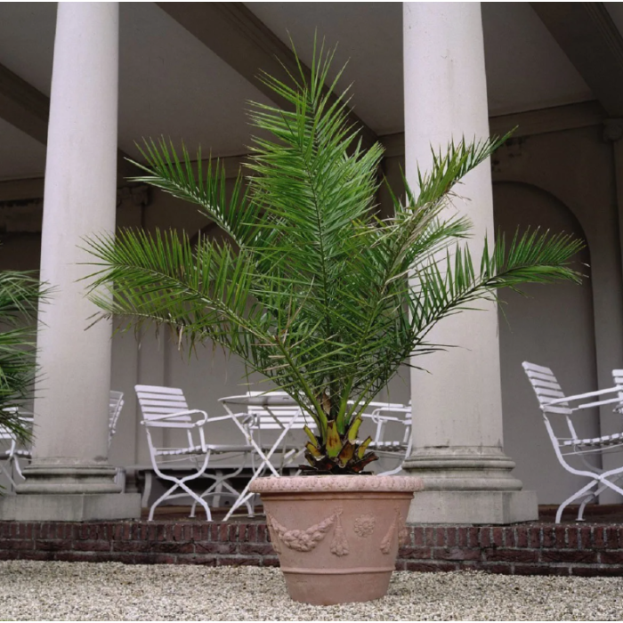 Очень привлекательное растение приспособлено для выращивания в комнатных условиях. У нее перистые листья яркого зеленого цвета, с сероватым оттенком, длиной до 1,5 м, изогнутые по краям. В помещении растение достигает 2-2,5 м. Любит светлое солнечное место. Летом растение лучше выносить на свежайший воздух. Зимой температура должна быть ниже 3-5 °С. Уход необходим регулярный, но не чрезмерный полив и ежедневное опрыскивание водой 1-2 раза. Зимой полив убавляют, стараясь не допускать пересыхания кома, и один раз в 2 недели поливают цветочным комплексным удобрением.