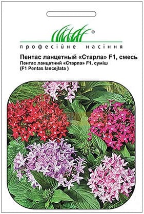 Пента Старла F1 - широко известное и очень популярное комнатное растение. Образует красивые сферические соцветия, состоящие из небольших звездчатых цветков красной, белой, розовой и фиолетовой окраски. Для получения цветущих растений в мае, семена высевают в январе. Сеянцы лучше всего пересаживать в контейнеры. Очень хорошо развивается в теплое время года, когда ночная температура не превышает + 7 градусов. Выращивают в качестве комнатного растения, а также в открытом грунте - как срезочный однолетник.