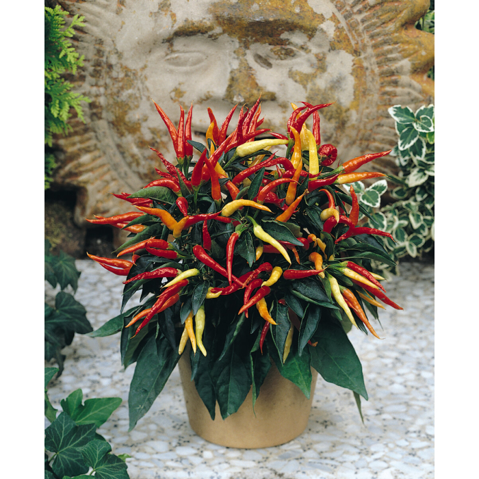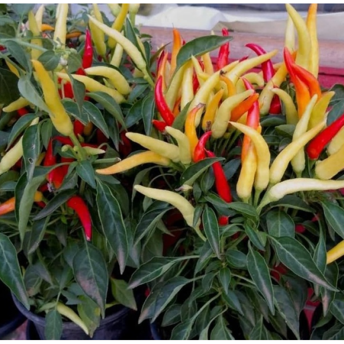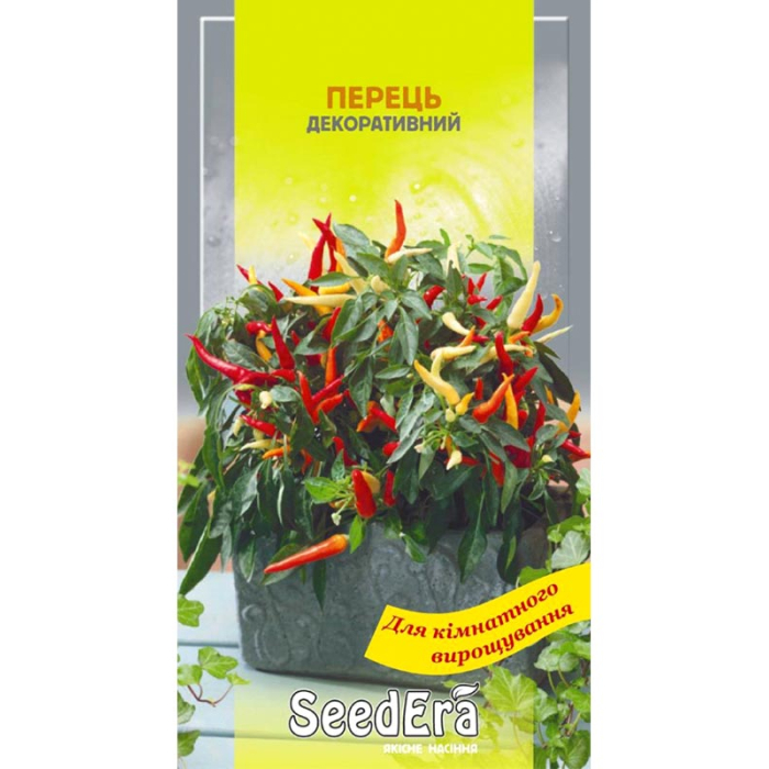 Перец острый Декоративный — компактный сорт острого перца, сочетающий декоративную привлекательность с отличными вкусовыми качествами. Кустики высотой до 30–40 см густо усыпаны небольшими плодами хоботовидной формы, которые в процессе созревания меняют окраску от зелёной до яркой красной, оранжевой или фиолетовой. Такое разнообразие оттенков делает растение эффектным украшением подоконников, балконов и клумб.