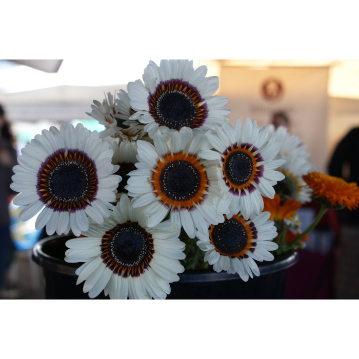 Великолепный сорт с пышными крупными соцветиями d=10-12 см на длинных цветоносах для любителей африканской экзотики. Благодаря яркой интересной окраске лепестков с несколькими переходами и кругами виден на больших расстояниях. Сохраняет декоративность в букетах 5-7 дней. Предпочитает солнечные участки. Не выносит переувлажнения!