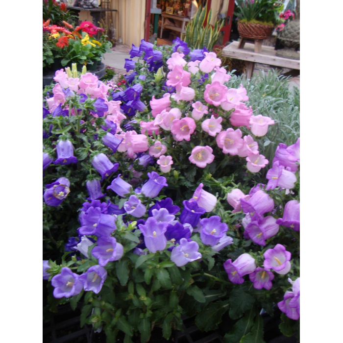 Двухлетнее растение с прямостоячими стеблями высотой 50-100 см. В начале июня на них образуются пирамидальные цветоносы с крупными цветками: белой, голубой, фиолетовой и розовой окраски. Семена на рассаду высевают в мае-июне, в сентябре растения пересаживают на постоянное место. Прекрасно растет на солнечных местах и в полутени. Колокольчики используют в групповых посадках на клумбах, бордюрах, рабатках, а также для создания букетов.
