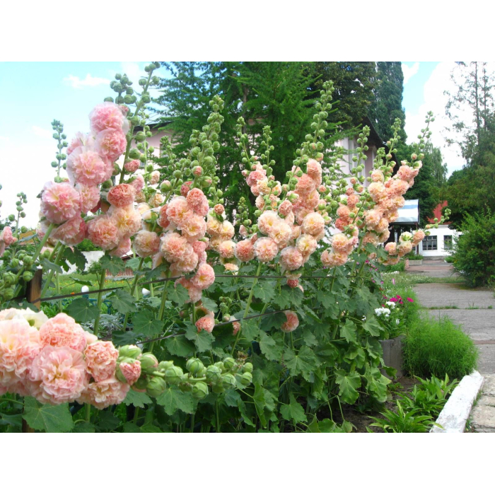 Роскошнейшее двухлетнее растение с пышными кистями крупных махровых цветков нежной розовой окраски, за которую сорт и получил назание "цвет яблони". В высоту достигает 1,8-2 м. Цветет на второй год после высадки, с июля по сентябрь.