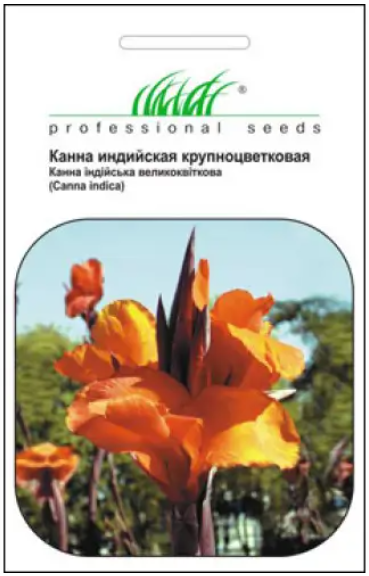 Канна крупноцветковая индийская (Canna indica) - многолетнее травянистое растение, которое ценят за экзотический вид, яркое цветение, устойчивость к болезням и вредителям. Образует прямостоячие, густо покрытые листьями стебли, высотой 100-120 см. Светолюбивая, теплолюбивая культура, предпочитает влажные, плодородные почвы. Уход заключается в подкормке, поливах и рыхлении участка. Семена требует скарификации (механическое повреждение оболочки). Высевают его в горшки во влажный грунт. Всходы появляются через 25-30 дней. Через три недели после появления всходов проводят пикирование в горшки диаметром 11-13 см, которые размещают в оранжерее или парники. В открытый грунт растения можно высаживать после весенних заморозков. Осенью растения выкапывают и переносят с земляным комом в холодное помещение.