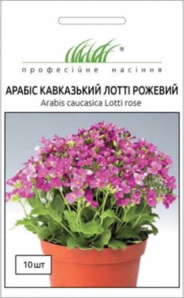 Арабис кавказский Лотти (Arabis caucasica Lotti). Ранний сорт с яркими розовыми или лиловыми соцветиями. Многолетник высотой 10-15 см. Стебли легко укореняются, в период цветения сильно разрастаются, образуя пышный ковер. Листья продолговатые, густо опушенные, серо-зеленого цвета. Цветение длится с начала мая до июля. Семена высевают в открытый грунт весной или под зиму. Наибольшей декоративности достигает на солнечных участках, но может расти в полутени. Идеальный грунт - нейтральный, песчаный, рыхлый, с хорошим дренажем. Для того, чтобы продлить период цветения и сохранить декоративный вид куста, рекомендуется отцветшие соцветия срезать на высоту 4-5 см. На открытых участках зимой нуждается в укрытии. Используют для весенних клумб, альпийских горок, бордюров и переднего плана рабаток. Арабис - хороший медонос, сладкий аромат которого привлекает пчел.
