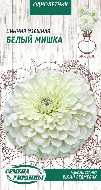Семена - Цинния Белый мишка, изящная, 0,5 г.