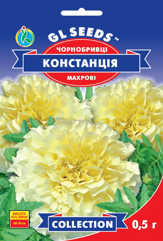 Новый высокодекоративный сорт с нежнейшей желтой окраской крупных густомахровых соцветий диаметром 8-10 см. Формирует мощный куст высотой 60-70 см. Растение засухоустойчивое, предпочитает плодородные, хорошо дренируемые почвы. Великолепно смотрится в групповых посадках на клумбах, рабатках. Роскошные цветы долго держатся в срезке.