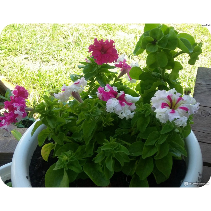 Растение крупное, высотой 35-40 см, слабо ветвистый. Прежде всего ценится крупными цветками, диаметром около 6 см с волнистыми, бахромчатыми, белыми краями, прекрасного окраса, темные розовые и фиолетовые пятна и полосы ... Читать далее...