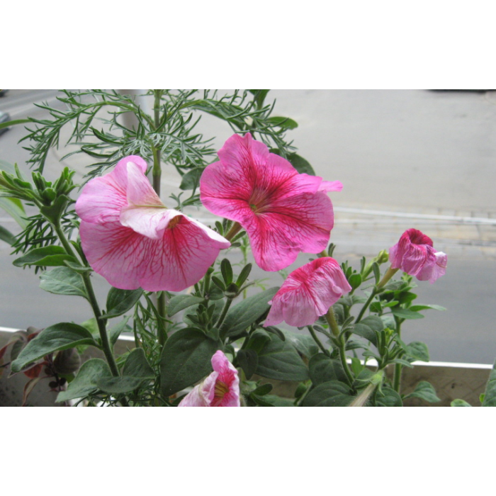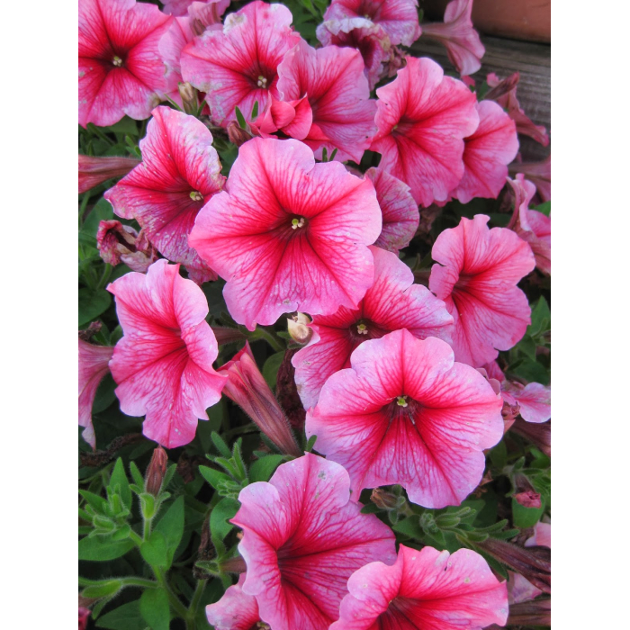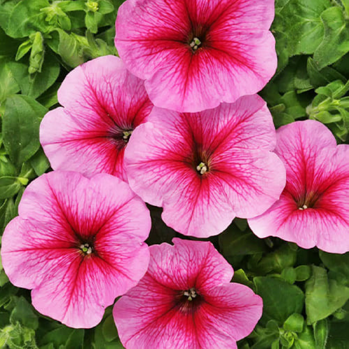 Популярная группа гибридных многоцветковых низкорослых петуний. Растение высотой 30-35 см, сильно ветвистое, цветет обильно, с цветками светлой розовой окраски с яркими прожилками, диаметром 5,5-6,5 см. Для того, чтобы показать всю свою красоту петунии необходимо солнце. Особенно пригодные для выращивания в цветниках (клумбы, рабатки), балконных ящиках и контейнерах, а также для городских посадок – озеленения. Быстро возобновляют цветение после сильного дождя. Выращивают высевом семян в почву в мае-июне или для более раннего цветения, через рассаду в марте-апреле.
