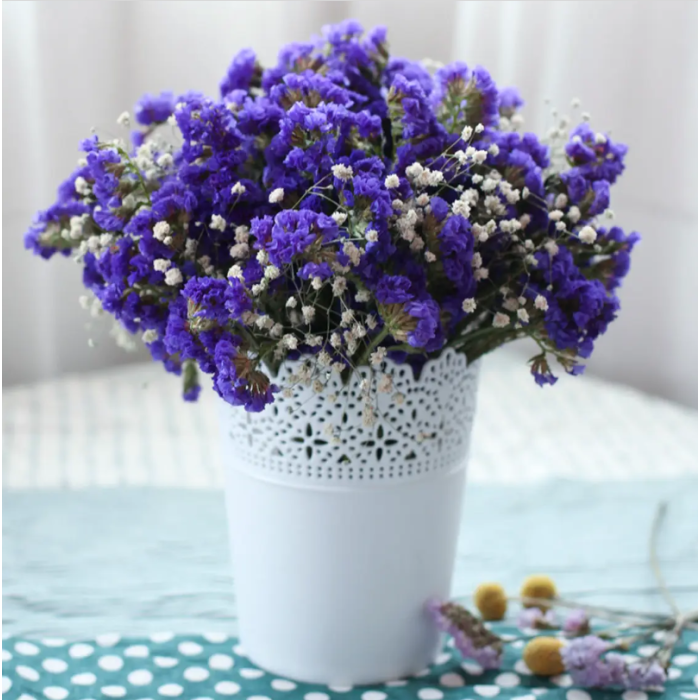 Статица выемчатая Синяя река (Limonium sinuatum Biue River) - однолетнее растение, высотой 60-70 см, с прямостоячими стеблями, разветвленными в верхней части. Цветы небольшие, до 1 см в диаметре, темной синей окраски, со... Читать далее...