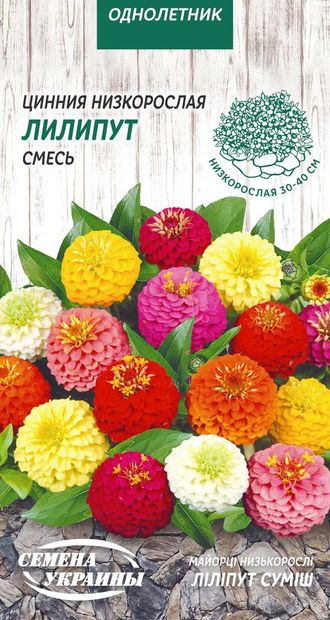 Семена - Цинния Лилипут, низкорослая, смесь, 0,5 г.