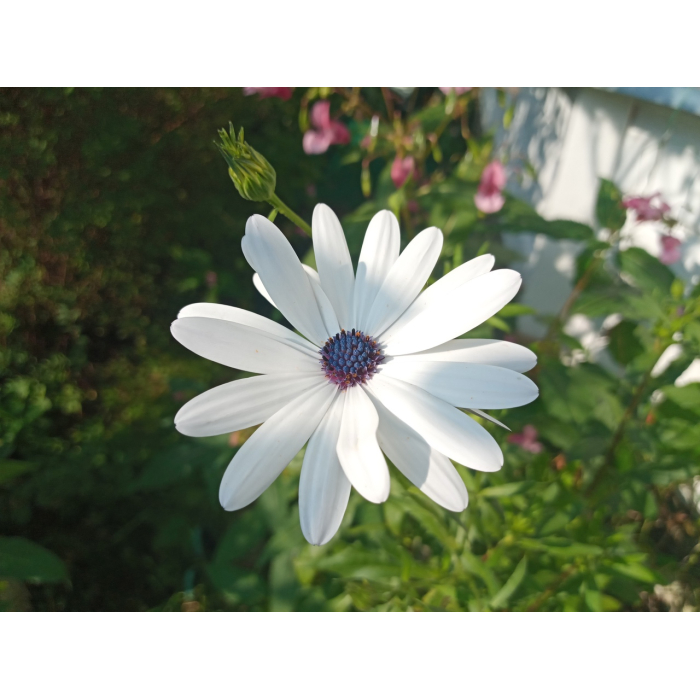 Однолетнее растение, светолюбивое, засухоустойчивое, холодостойкое, высотой 30-40 см. Соцветие – корзинки ромашковидные, диаметром 6-8 см, окраска цветка белая с голубой серединой. Высевают в прогретую почву. Используют для украшения балконов и бордюров. Высевают в открытую почву в конце апреля, мая. Цветет с июня по август. Во влажной почве всходы появляется на 7-8-й день после посева.