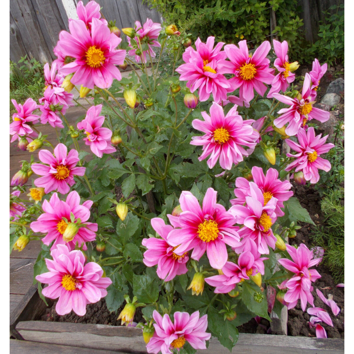 Георгины "Миньон" - это однолетние компактные растения с самыми разнообразными окрасками соцветий. От простых георгин "Миньон" отличаются более низкими размерами, как правило не превышающими в высоту 50 см. Не требуют дополнительных опор, цветут продолжительно и очень обильно. "Миньон" отлично подходят для переднего края бордюра, а также в качестве контейнерных посадок для украшения террас, балконов и веранд. Легко выращиваются из семян, но предпочитают рассадный способ и легко переносят пересадку. Лучше оставить между отдельными экземплярами расстояние побольше, так как кустики впоследствии очень разрастаются.