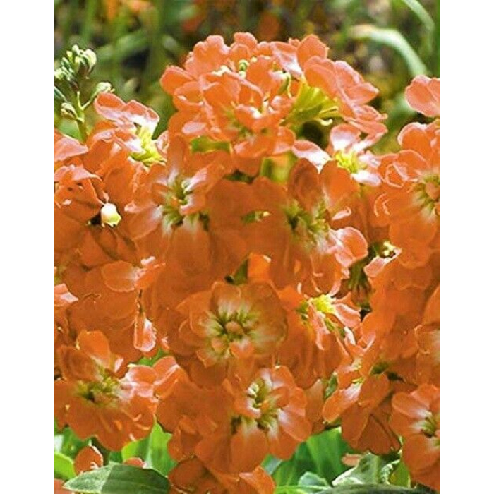 Однолетнее растение высотой до 55 см. Крупные оранжевые густомахровые цветки собраны в мощные компактные соцветия. Листья крупные, ромбовидные. Красота и пышность цветения, эффектность и гармоничность окраски, супер аромат ставят левкой в один ряд с лучшими цветочными растениями. Предпочитает открытые солнечные места, хорошо дренированную, плодородную почву. Используется для клумб, смешанных рабаток и мавританского газона.