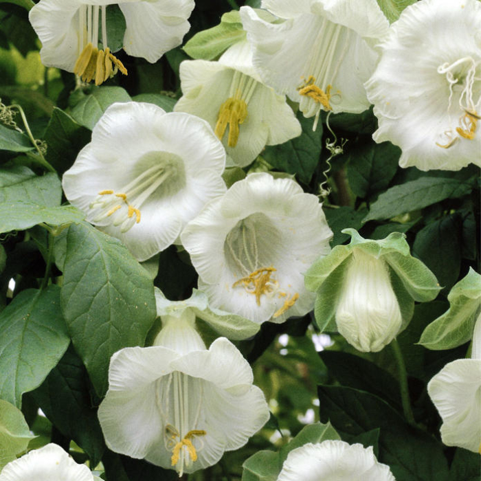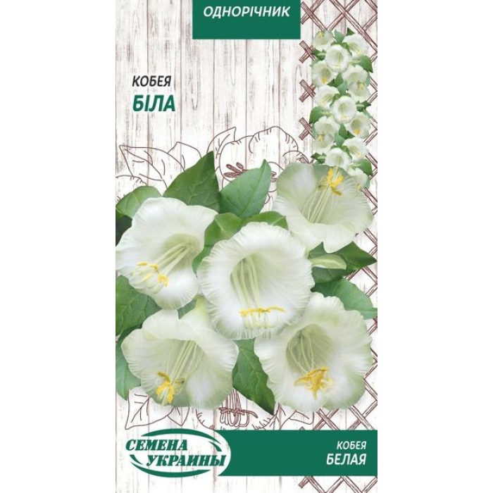 Многолетник выращивается как однолетник. Растение вьющееся, длина побегов достигает 3-4 м. Цветки крупные, колокольчатые, диаметром 7-8 см, белой окраски. Используется для декорирования стен, заборов, балконов, веранд и ... Читать далее...