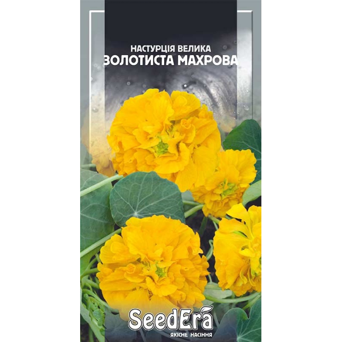 Настурция Золотистая махровая — эффектное однолетнее растение с пышными, махровыми цветами желтого оттенка. Отличается продолжительным и обильным цветением, которое начинается в начале лета и продолжается до первых заморозков. Крупные яркие цветки прекрасно смотрятся на фоне декоративной листвы, создавая яркий акцент в цветниках, на балконах и в подвесных кашпо.