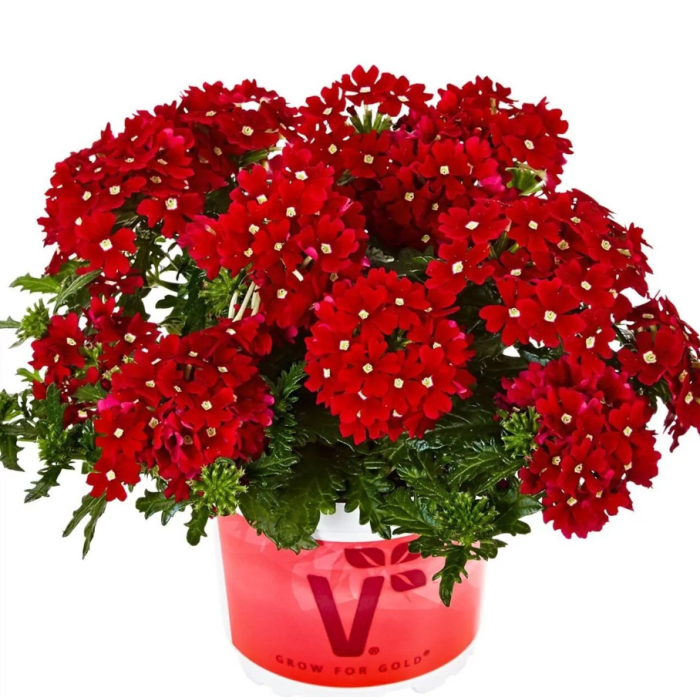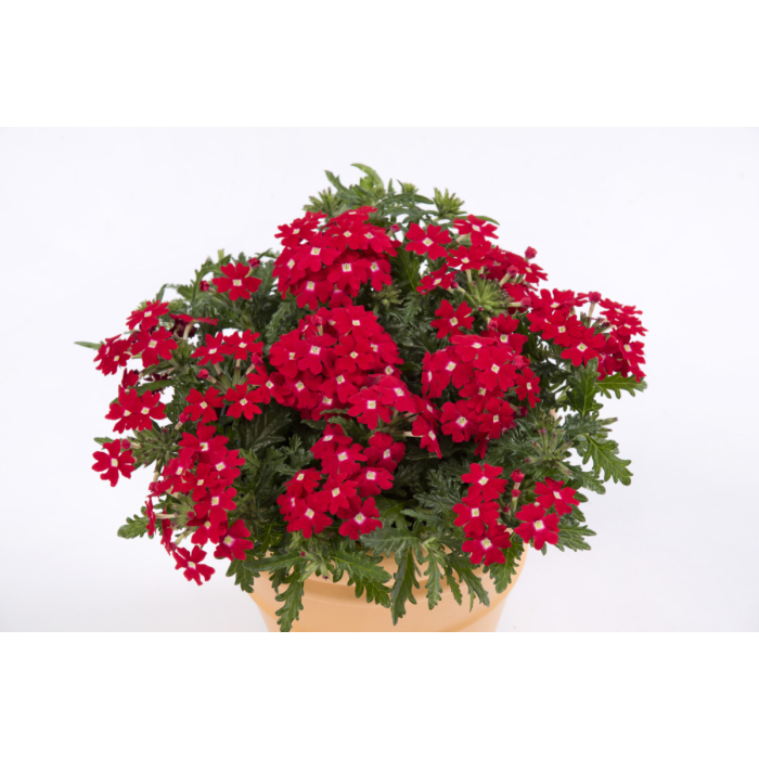 Растение почвопокровное, 20-25 см высотой, сильноветвистое, обильно и продолжительно цветущее, с яркими красными, правильной формы цветками с белоснежным глазком, собранными в крупные шаровидные соцветия диаметром 6-7 см... Читать далее...