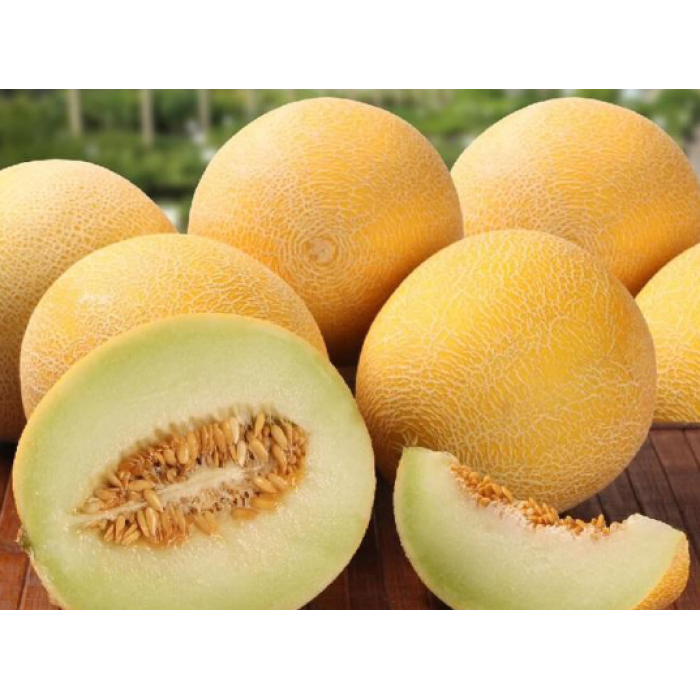 Фантастически ароматная и сладкая дыня с тропическим вкусом, наполненным нотками ананаса и масла, и свежим, похожим на банан ароматом. Шкура желтая с густой аккуратной сеткой. Плотная хрустящая мякоть белого цвета, возле кожуры – с зеленым оттенком. Сорт создан скрещиванием двух прекрасных дынь – израильского Haogen и замечательной Galia F1 с отборами на раннеспелость. В результате получилась дыня со сладостью и высокими вкусовыми качествами Хаогена и долговечностью, благодаря сетчатой крепкой коже Галлии, с ранними сроками созревания (65-75 дней от всходов). Сорт производит высокие урожаи экстра-сладких плодов весом 4-6 фунтов (2-3 кг) слегка удлиненной формы.