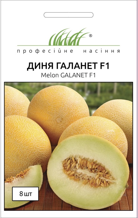 Галанет F1 — ранний гибрид-новинка дыни типа Галлия. Предназначен для культивирования в открытом грунте. Гибрид характеризуется простой агротехникой и хорошей производительностью. Дыня Галанет F1 формирует плоды округлой формы, желтой окраски с выраженной сеткой. Средняя масса плода — 1 кг, диаметр — 15–18 см. Мякоть светлой зелено-белой окраски, очень душистая и сладкая (brix 13,5). Плоды рекомендованы для употребления в свежем виде. Отличаются небольшой семенной камерой и способностью хорошо храниться.