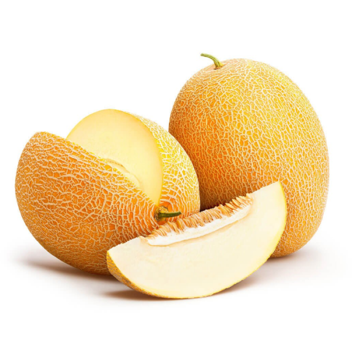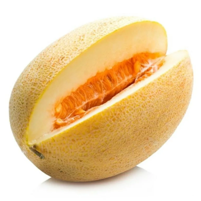 Сочная, ароматная дыня с замечательным вкусом и сливочной, белой плотью, которая становится оранжевой вокруг маленькой семенной полости. Плоды весом 4-6 фунтов (2-3 кг) овальные, желтые, при созревании – с загаром (через 65-75 дней после всходов), густо покрытые плотной сеткой. Замечательно сбалансированные вкус и текстура. Аромат цветочно-фруктовый с тропическими нотками кокосового ореха и ананаса. Высокое содержание сахаров. Этот сорт успешно выращивается в условиях жаркого сухого климата для получения раннего урожая.