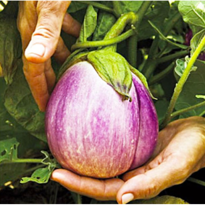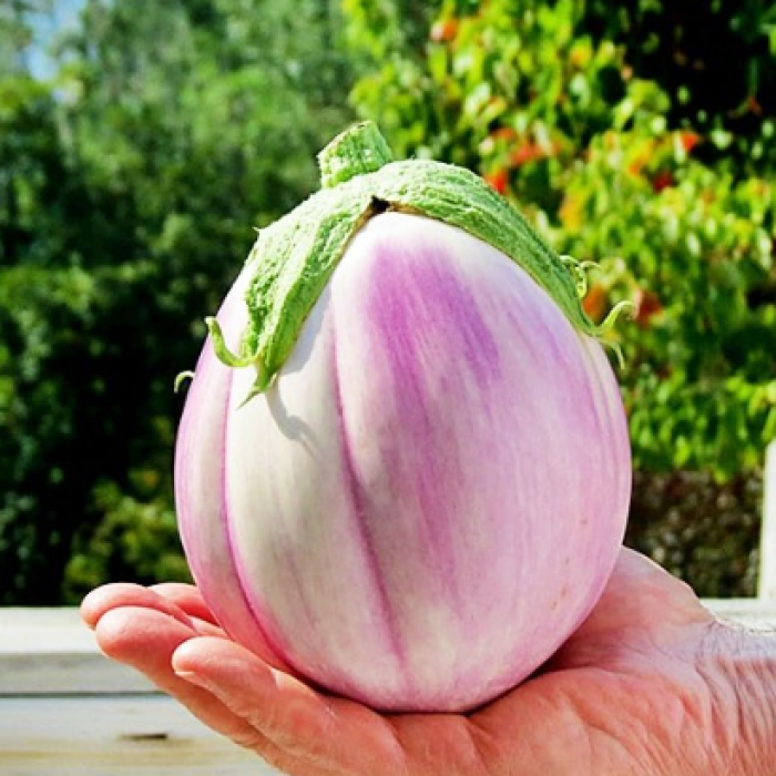 Этот сорт является разновидностью известного в Италии Rotonda Bianca, но отличается от него более крупными размерами (до 1 кг) и более нежной, не темнеющей мякотью. Большой, очень красивый округлый баклажан 4-5 дюйма (10... Читать далее...