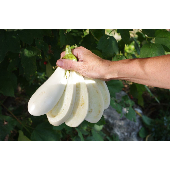 Ранний черезвычайно продуктивный гибрид с крупными 300-400 г цилиндрическими плодами экзотической белоснежной окраски, выдающихся вкусовых качеств на гриле, в квашении, овощной икре. Полное отсутствие горечи в плодах. Показывает отличные результаты в различных климатических условиях. Устойчив к стрессам, толерантен к фузари озному увяданию. Для пленочных теплиц и открытого грунта. Хит продаж.