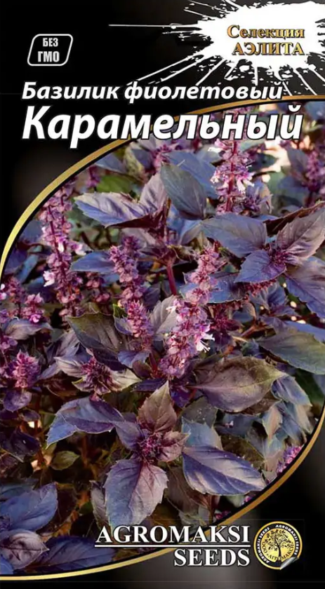 Самый душистый из всех видов базилика. Благодаря темным фиолетовым листьям пряно-ароматический базилик очень декоративный. Отличается высоким содержанием минеральных солей, витаминов А, С, Р, В. Растение раскидистое, среднерослое, прекрасно отрастает после срезания. Масса растения достигает 300 грамм. Обладает сильным специфическим ароматом фруктовой карамели. Предназначен для употребления в свежем виде, сушки, заморозки, маринования, а также для ароматизации уксуса и других напитков.