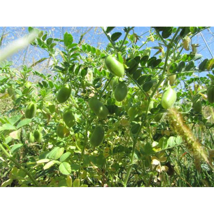 Однолетняя зернобобовая культура «бараний горох». Стебель прямостоячий, 20-70 см. Стручки короткие, вздутые, 1-3 семенные. Семена по форме напоминают голову барана, имеют бугорчато-шершавую поверхность. Используется в ди... Читать далее...