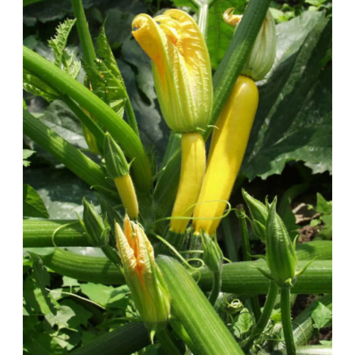 Очень ранний (40 дней) гибрид кустового кабачка, желтого цвета. Растение компактное, плоды однородные, цилиндрические, длиной 18-20 см, привлекательного желтого цвета, при перерастании не грубеют. Мякоть белая, семенная камера очень маленькая. При достаточном питании и влажности растение плодоносит до начала заморозков. Гибрид пригоден для рынка свежих овощей, переработки на икру и консервации. При переработке плоды не теряют своего цвета. Высокая устойчивость к вирусу желтой мозаики и бактериальной пятнистости листьев.