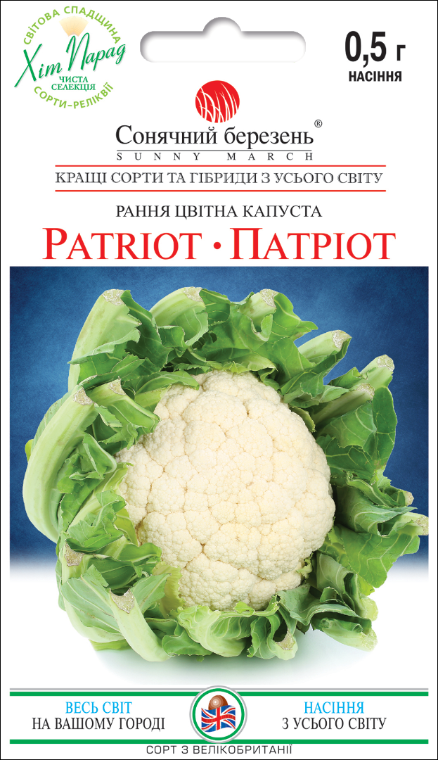 Капуста цветная «Патриот» — среднеспелый сорт с компактными белыми кочанами высокой плотности. Отличается отличной лежкостью, хорошей устойчивостью к типичным болезням и равномерным формированием урожая. Подходит как для свежего потребления, так и для заморозки и приготовления блюд.