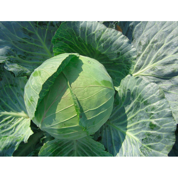 Поздний гибрид. Период от всходов до сбора урожая 145-155 дней. Кочаны среднего размера, круглой формы, зеленого цвета, в разрезе белого цвета, массой 3,5-4,5 кг. Без ГМО.