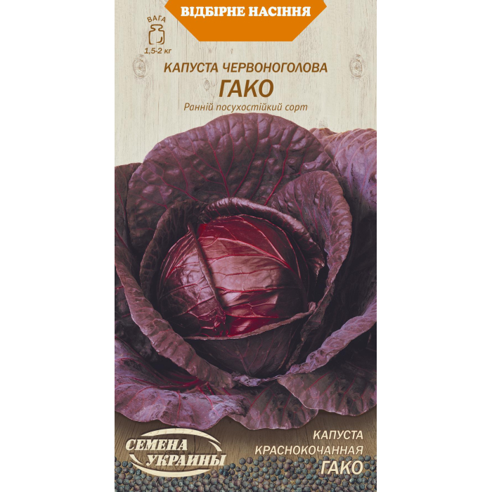 Ранний сорт. Период от всходов до сбора урожая 100-110 дней. Кочаны среднего размера, круглой формы, красной окраски, массой 1,5-2 кг. В разрезе белого цвета. Без ГМО.... Читать далее...