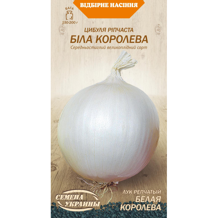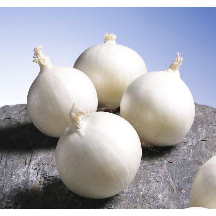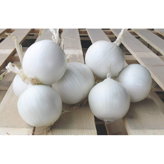 Среднеспелый сорт. Период от всходов до спелости 90-110 дней. Луковицы крупные, округлой формы, весом 150-200 г, полуострого вкуса, белой окраски чешуи. Без ГМО.