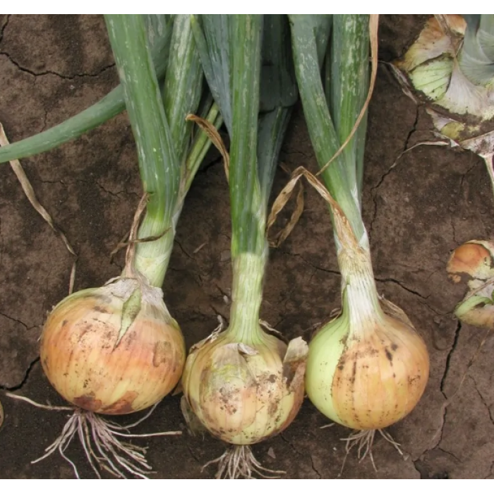 Озимый сорт, устойчивый к низким температурам. Он предназначен для зимнего выращивания, успешно выживая зимой в поле. Формирует круглые, слегка сплюснутые луковицы весом 110-120 г. Их мякоть кремово-белая и довольно пикантная на вкус. Внешние чешуи при созревании приобретают привлекательный золотистый цвет. Луковицы этого сорта собирают весной следующего года, это самый ранний репчатый лук. Идеально подходит для раннего сбора урожая, когда Вы собираете маленькие луковицы с зеленым пером. Собранные при полном созревании в начале июня высококачественные луковицы предназначены для непосредственного потребления, они хранятся до двух месяцев.