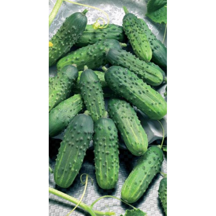 Ранний гибрид. Период от всходов до начала спелости 40-45 дней. Плоды небольшие, овально-цилиндрической формы, бугорчатые, длиной 9-12 см, весом 70-90 г, интенсивного зеленого цвета. Без ГМО.... Читать далее...