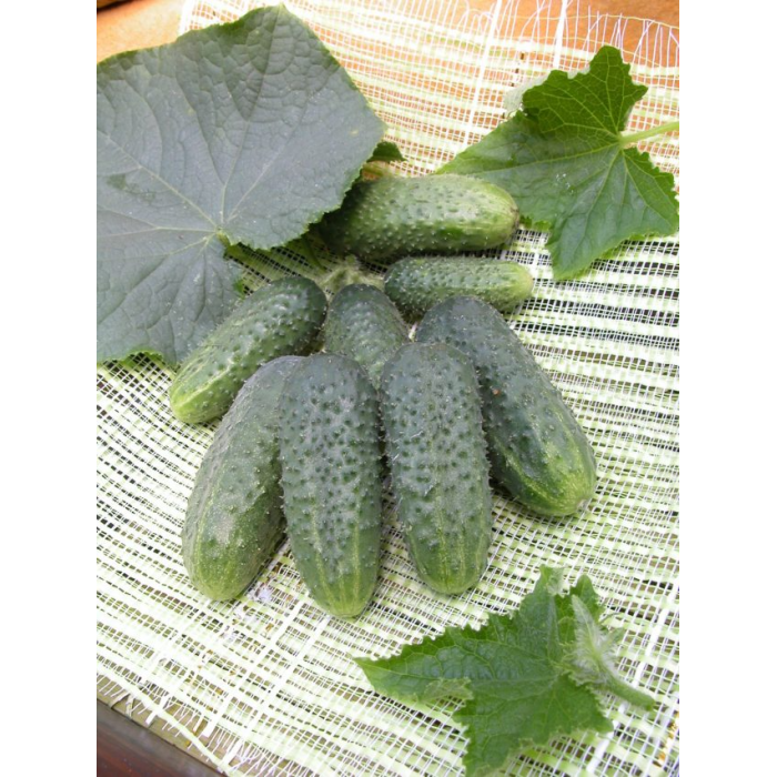 Ранний гибрид пучкового типа плодоношения. Период от всходов до начала созревания 45-50 дней. Плоды среднего размера, цилиндрической формы, бугорчатые, бурошипые, длиной 11-13 см, массой 100-120 г, тёмной зеленой окраски... Читать далее...