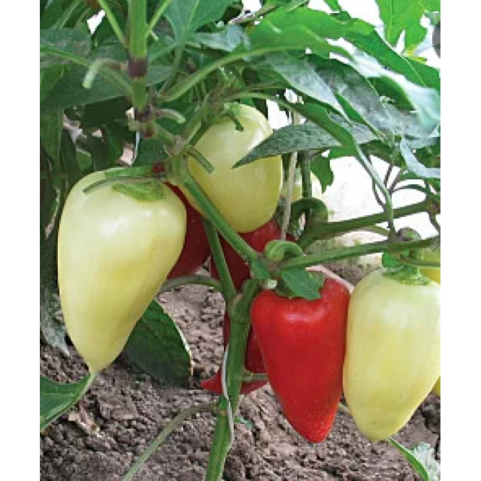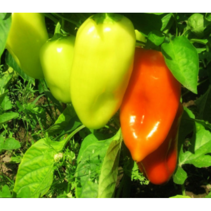 Среднеранний сорт для выращивания в открытом и закрытом грунте. Вегетационный период от всходов до биологической спелости 115-125 дней. Куст компактный, высотой 40-60см. Плоды крупные, конусовидные, в технической спелости желто-белой окраски, в биологической спелости оранжево-красные, массой 80-120г, с толщиной стенок 4-6мм. Ценность сорта: высокая урожайность, хорошая лежкость и транспортабельность. Используется для потребления в свежем виде и переработки.
